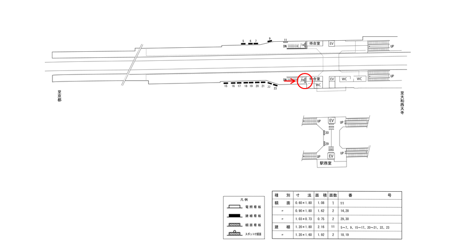 この看板以外にも改札の周辺の看板でしたり、7日間から使えるポスター広告などがあります。