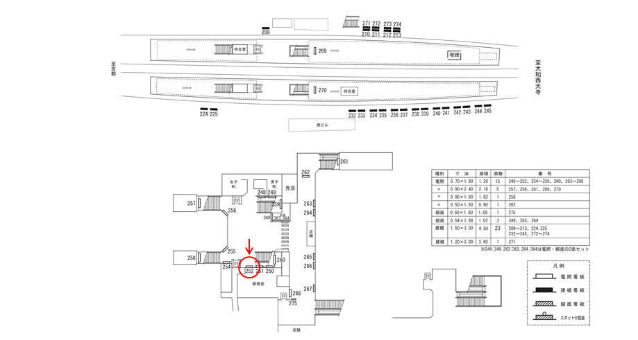 駅看板「近鉄 新田辺駅 №252」は近鉄 新田辺駅の改札内コンコースにある電飾看板です。