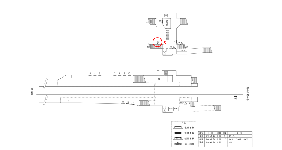 この看板以外にも改札の周辺の看板でしたり、7日間から使えるポスター広告などがあります。