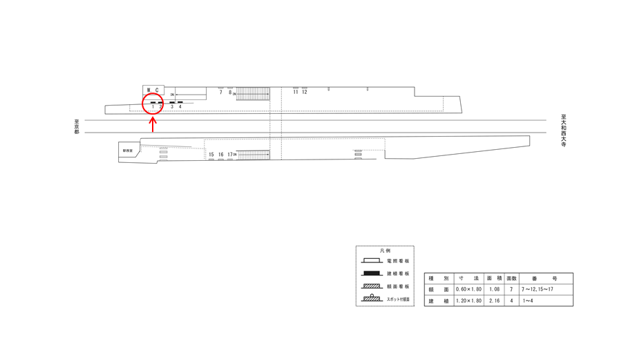 この看板以外にも改札の周辺の看板でしたり、7日間から使えるポスター広告などがあります。