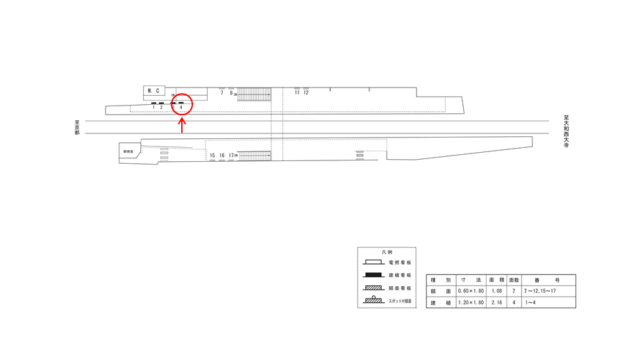 駅看板「近鉄 狛田駅 №4」は近鉄 狛田駅の近鉄京都線 天理・橿原神宮前方面のホーム上にある看板です。