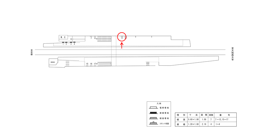 この看板以外にも改札の周辺の看板でしたり、7日間から使えるポスター広告などがあります。