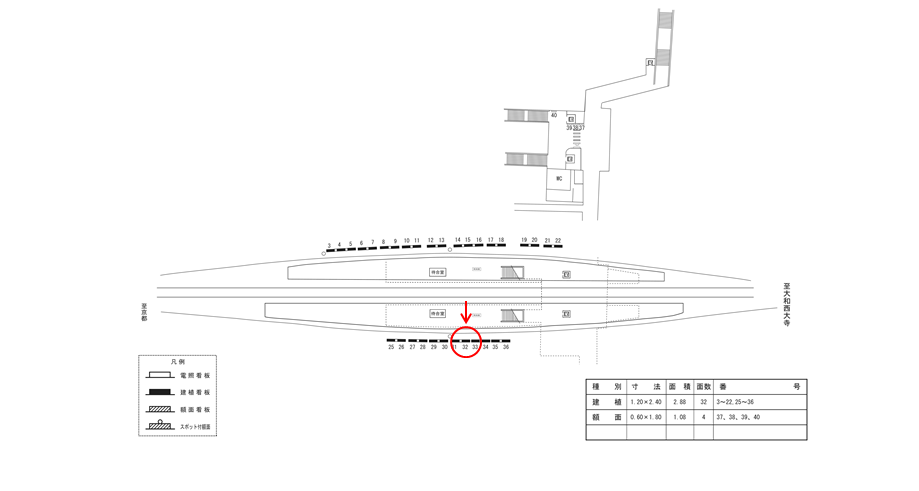 ○№22 線路前(近鉄京都線 近鉄奈良・天理・橿原神宮前方面) |