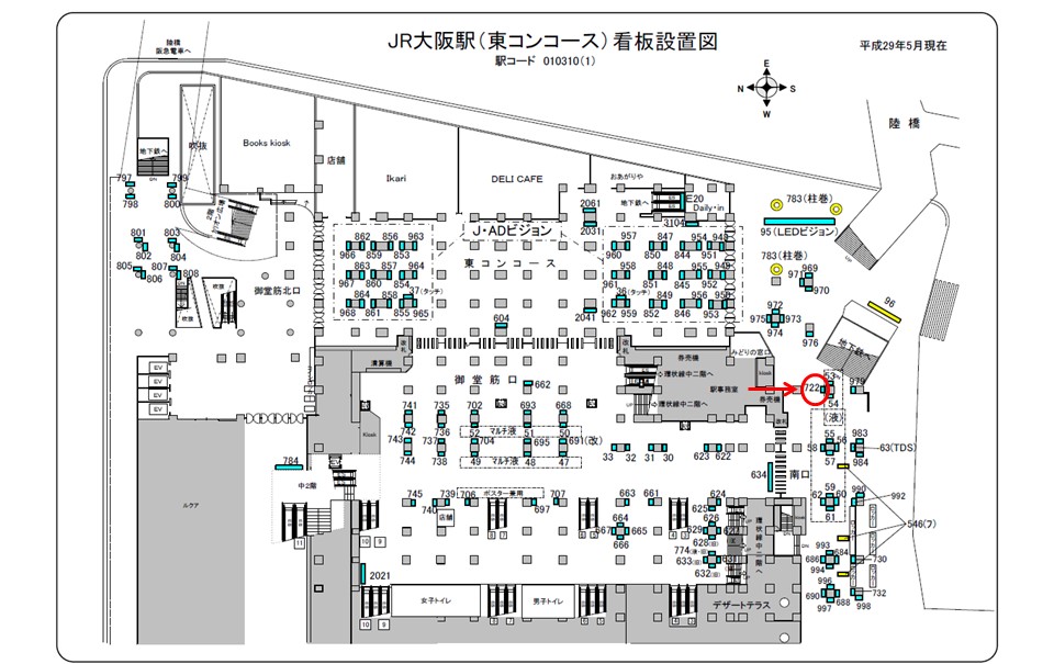 JR大阪駅の中で最も流動数が多いエリアである御堂筋エリアに設置されたビジョン広告になります。