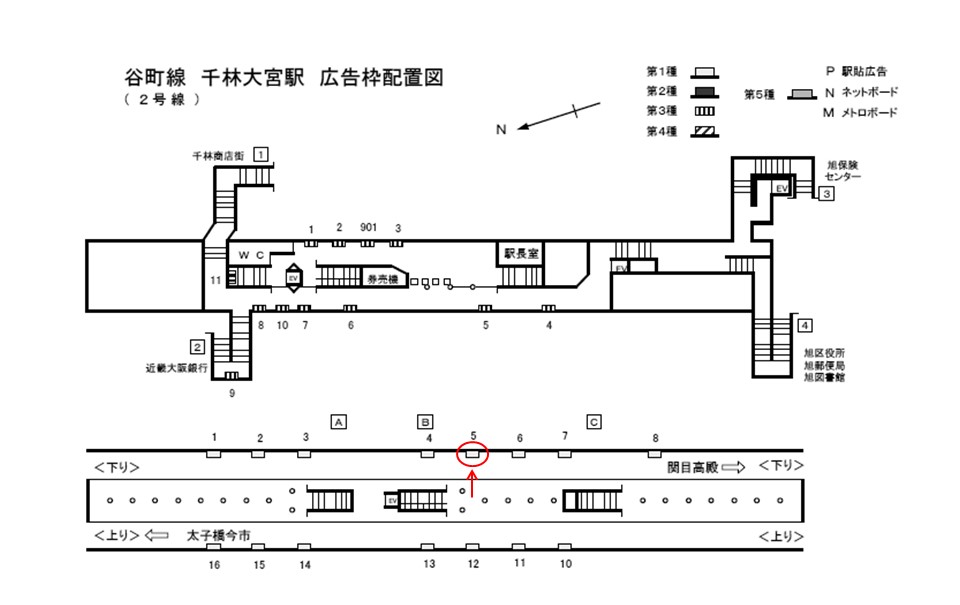 主に下りホーム(関目高殿方面)にて電車をお待ちの方々に訴求します。