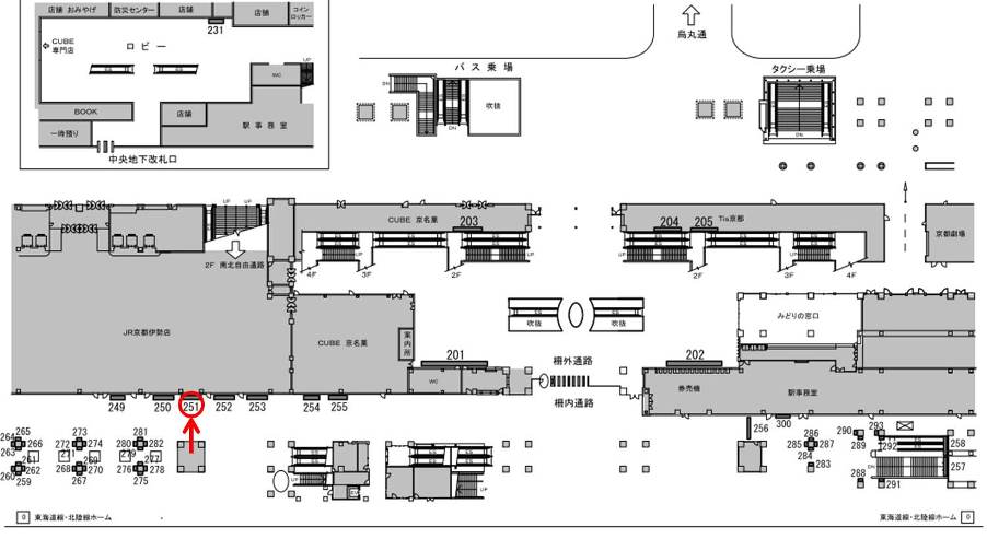 東海道本線・北陸線ホーム(0番のりば)へ向かう際の通路にございます。