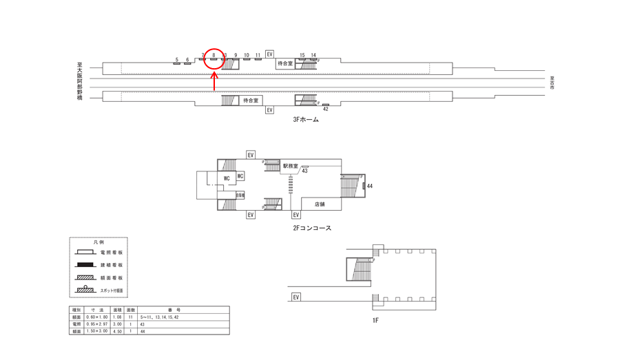 この看板以外にも改札の周辺の看板でしたり、7日間から使えるポスター広告などがあります。