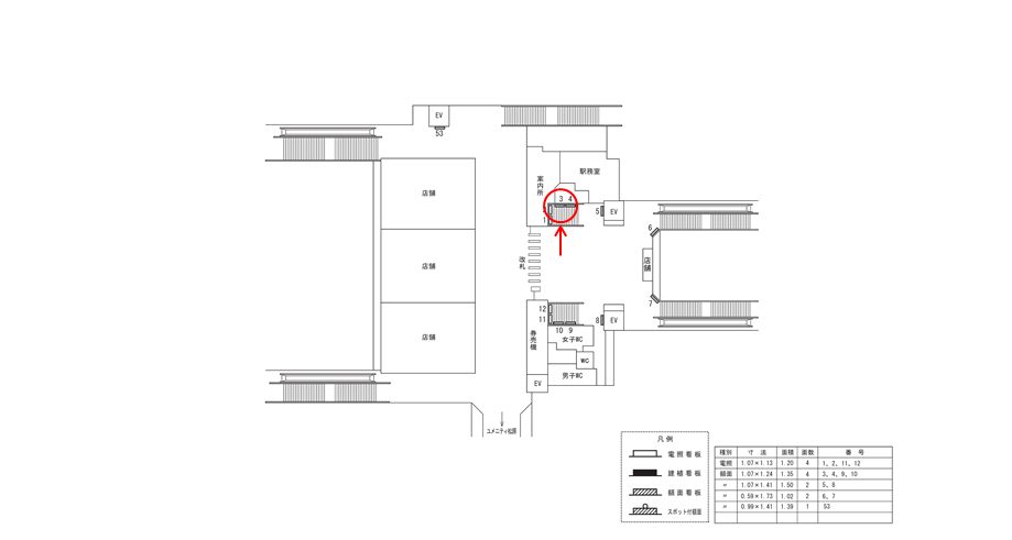 この看板以外にも改札の周辺の看板でしたり、7日間から使えるポスター広告などがあります。