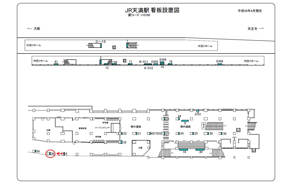 JR大阪環状線天満駅の改札外通路柱に掲出された非電照看板です。