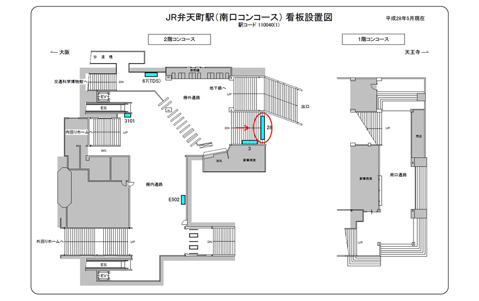 JR弁天町駅の南口改札外通路階段上部に設置された広告看板です。