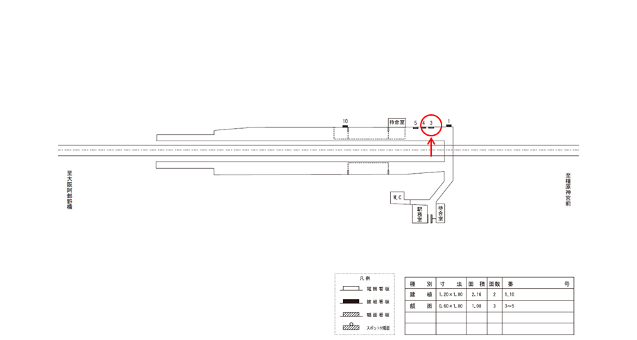 駅看板「近鉄 磐城駅 №3」は近鉄 磐城駅の近鉄南大阪線 橿原神宮前方面ホームのスロープ付近にある看板です。電車を待っている駅利用者に見てもらえます。
