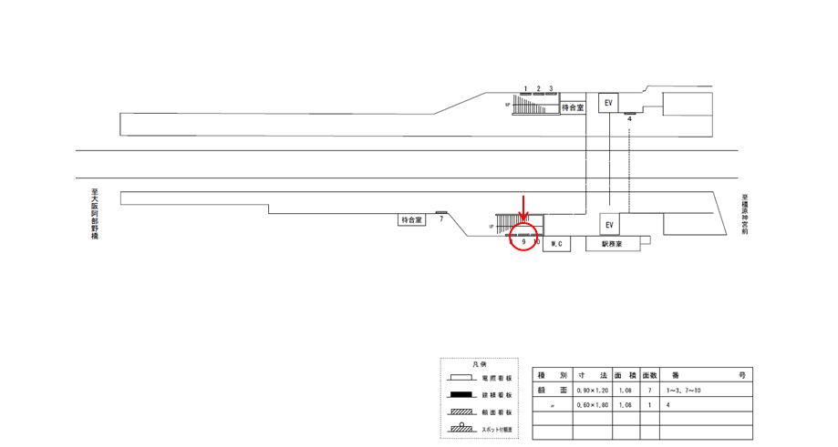 駅看板「近鉄 坊城駅 №9」は近鉄 坊城駅の近鉄南大阪線 大阪阿部野橋方面ホームの階段付近にある看板です。電車を待っている駅利用者に見てもらえます。