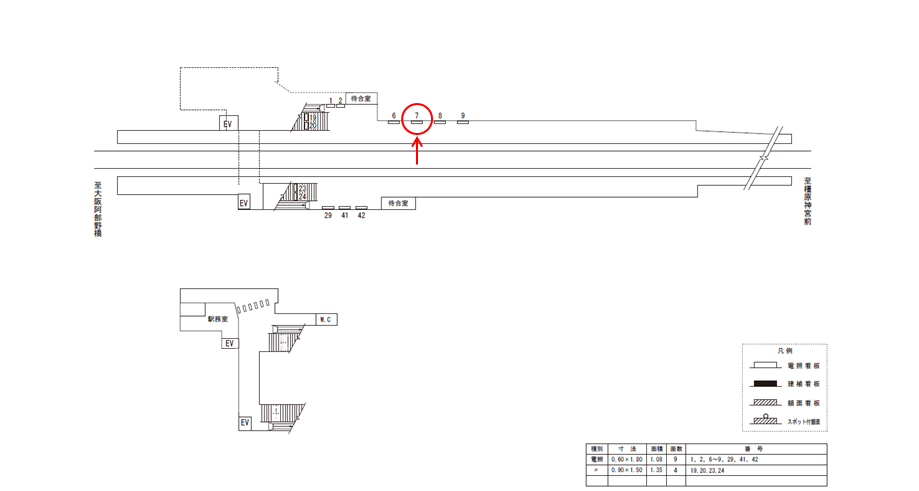 この看板以外にも改札の周辺の看板でしたり、7日間から使えるポスター広告などがあります。