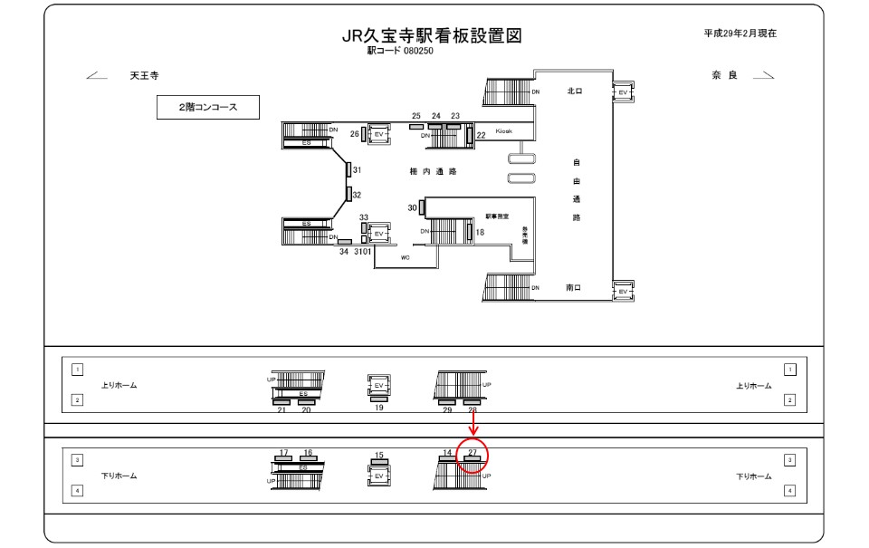 下りホーム(天王寺方面)をご利用される方々はもちろん、上りホーム(王寺・奈良方面)にて電車をお待ちの方々にも視認されます。