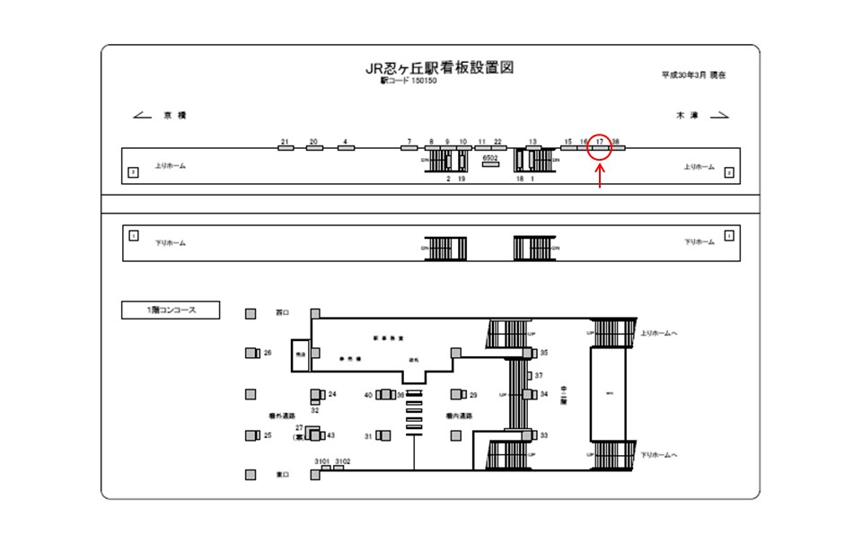 駅看板「JR 忍ヶ丘駅 №017」