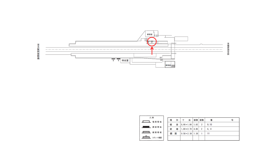 駅看板「近鉄 上ノ太子駅 №11」は近鉄 上ノ太子駅の近鉄南大阪線 橿原神宮前方面のホーム上のスロープ付近にある看板です。