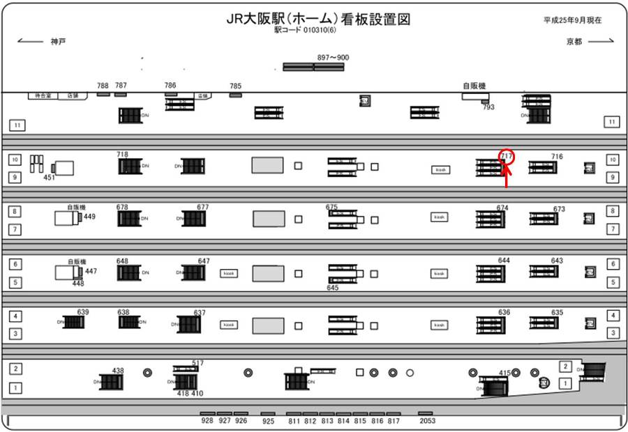 駅看板「JR 大阪駅 №717」