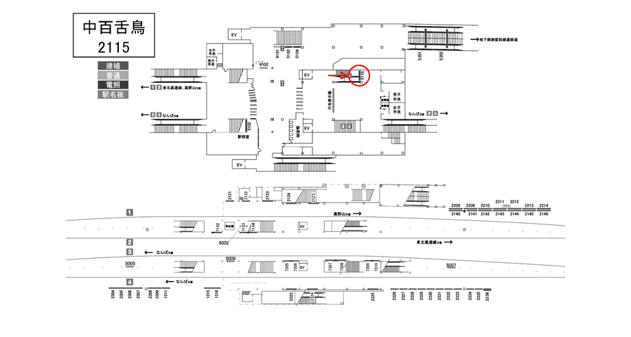 南海 中百舌鳥駅の駅構内の階段正面にある駅看板です。