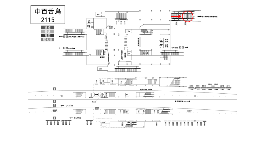 南海 中百舌鳥駅の駅構内の階段正面にある駅看板です。
