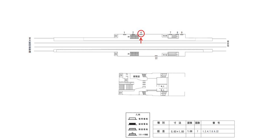 この看板以外にも改札の周辺の看板でしたり、7日間から使えるポスター広告などがあります。