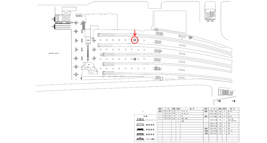 ○№156 改札外コンコース(西改札 あべのハルカス入口付近 柱) |