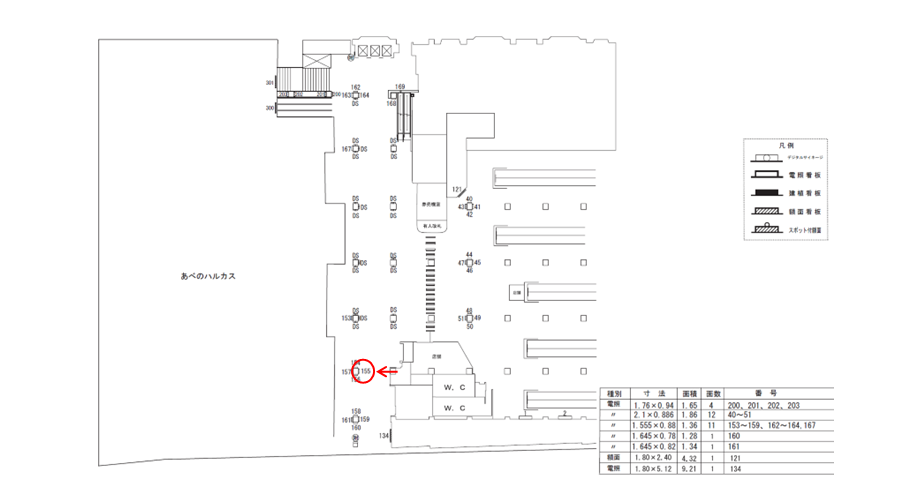 ○№156 改札外コンコース(西改札 あべのハルカス入口付近 柱) |