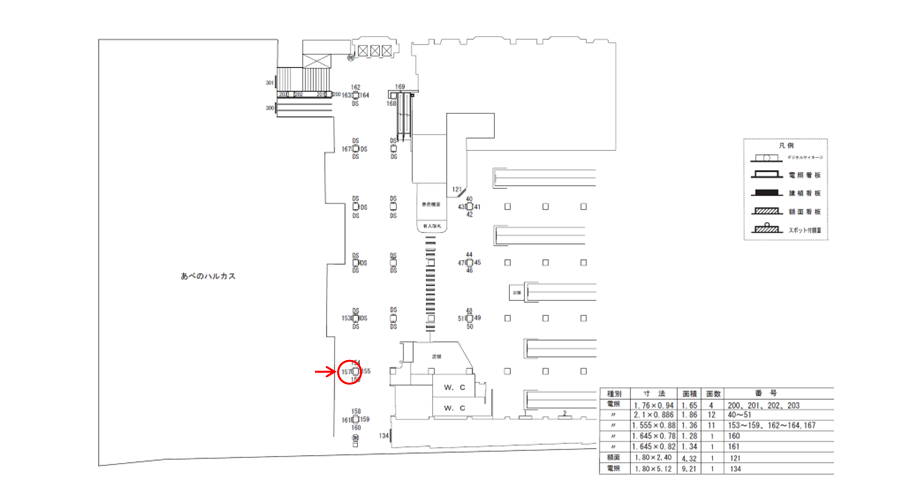 ○№155 改札外コンコース(西改札 あべのハルカス入口付近 柱) |