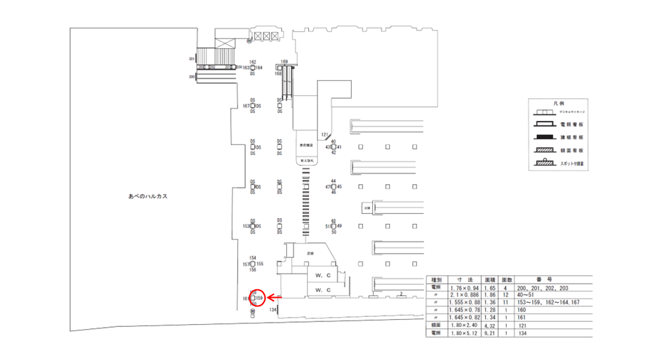 ○№156 改札外コンコース(西改札 あべのハルカス入口付近 柱) |