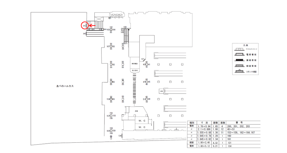 ○№156 改札外コンコース(西改札 あべのハルカス入口付近 柱) |