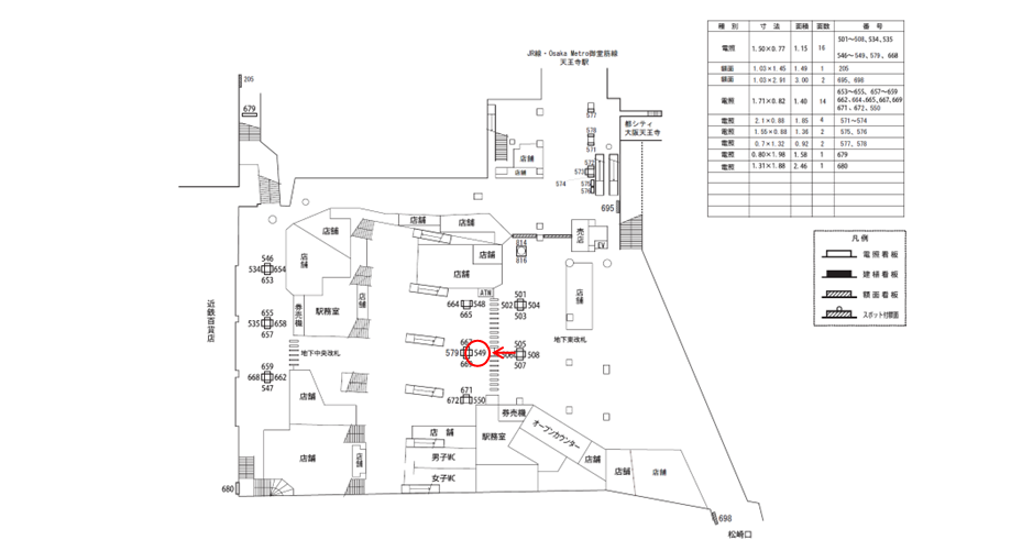 ○№573 改札外コンコース(JR線・Osaka Metro御堂筋線天王寺駅連絡通路付近 柱) |