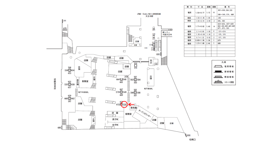 ○№571 改札外コンコース(JR線・Osaka Metro御堂筋線天王寺駅連絡通路付近 柱) |