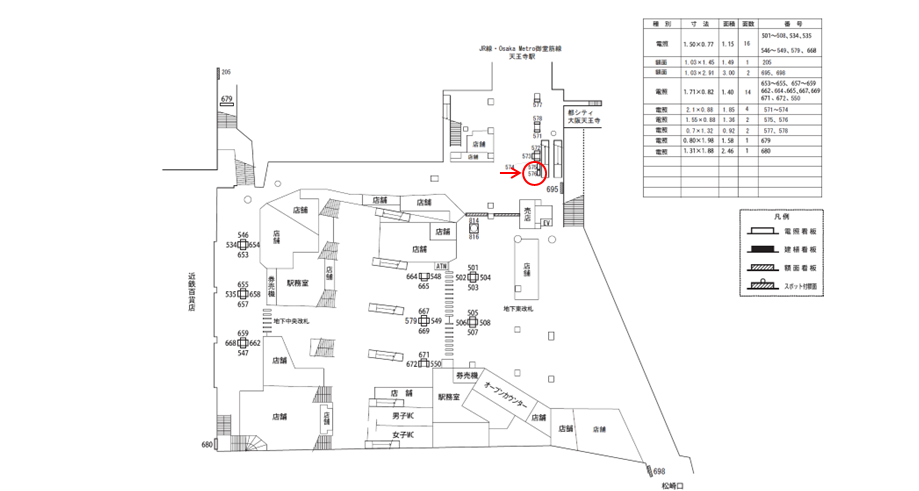○№573 改札外コンコース(JR線・Osaka Metro御堂筋線天王寺駅連絡通路付近 柱) |