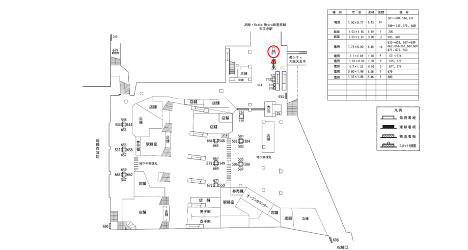 ○№573 改札外コンコース(JR線・Osaka Metro御堂筋線天王寺駅連絡通路付近 柱) |