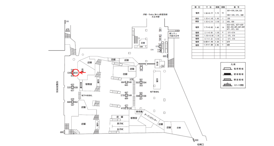 ○№573 改札外コンコース(JR線・Osaka Metro御堂筋線天王寺駅連絡通路付近 柱) |