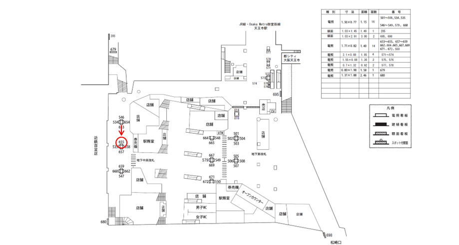 ○№573 改札外コンコース(JR線・Osaka Metro御堂筋線天王寺駅連絡通路付近 柱) |
