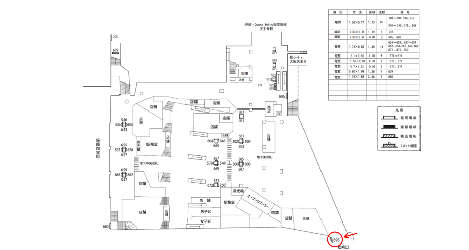 ○№578 改札外コンコース(JR線・Osaka Metro御堂筋線天王寺駅連絡通路付近 柱) |