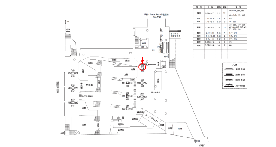 ○№571 改札外コンコース(JR線・Osaka Metro御堂筋線天王寺駅連絡通路付近 柱) |