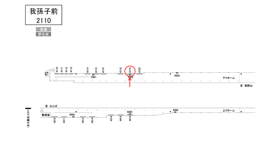 南海 我孫子前駅のホームにある駅看板です。