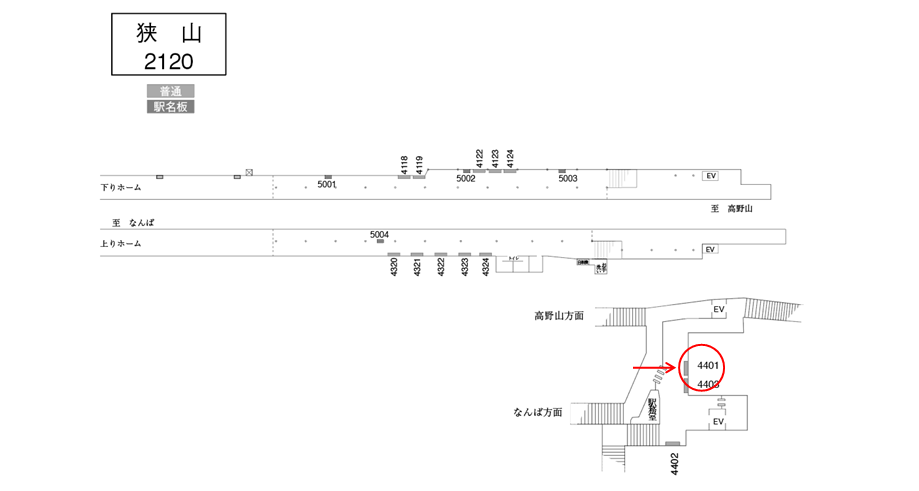 南海 狭山駅の駅構内 改札付近にある駅看板です。