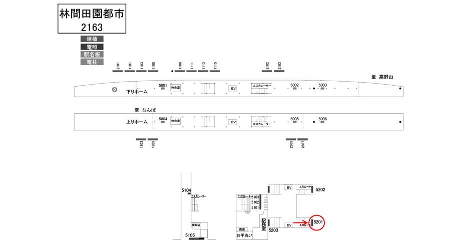 南海 林間田園都市駅のホーム階段正面にある駅看板です。