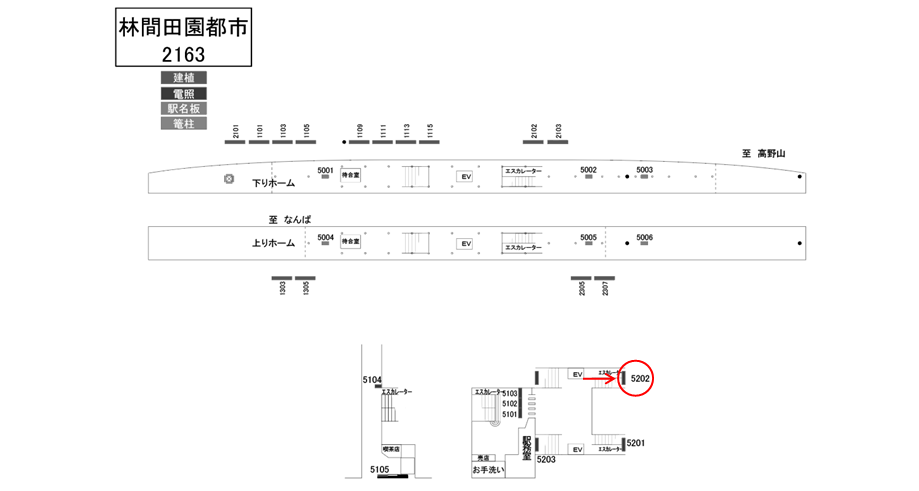 南海 林間田園都市駅のホーム階段正面にある駅看板です。