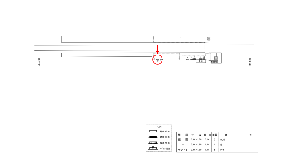 駅看板「近鉄 一分駅 №12」は近鉄 一分駅の近鉄生駒線 王寺方面のホーム上にある看板です。