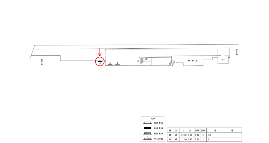 駅看板「近鉄 竜田川駅 №6」は近鉄 竜田川駅の近鉄生駒線 ホーム上にある看板です。電車を待っている方に見てもらえるほか、駅の舎外からも見ることができる位置に設置されています。