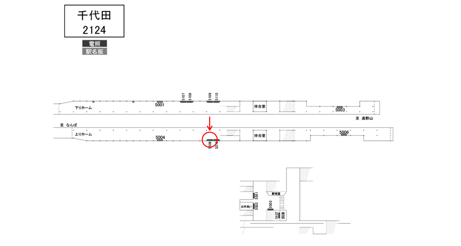 南海 千代田駅のホーム階段付近にある駅看板です。