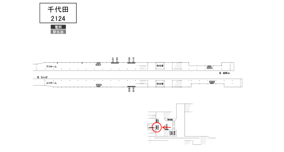 南海 千代田駅の駅構内 改札正面にある駅看板です。