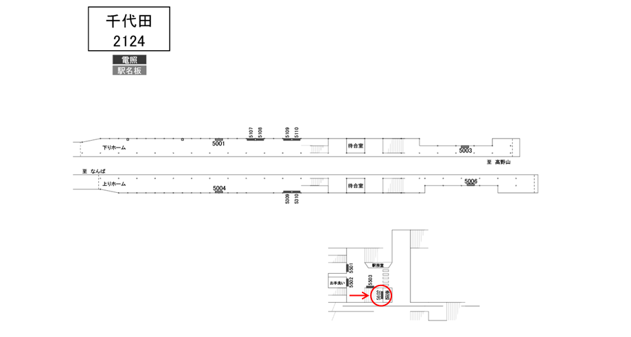 南海 千代田駅のホーム階段正面にある駅看板です。
