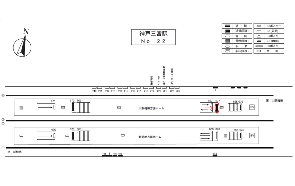 主に新開地方面ホームを降車される方々に視認されます。