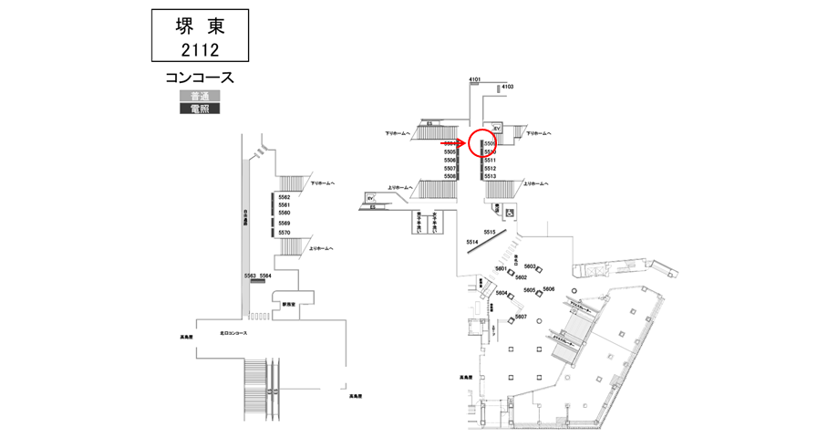 ○№5511 改札内コンコース(ホーム階段付近 西改札側) |