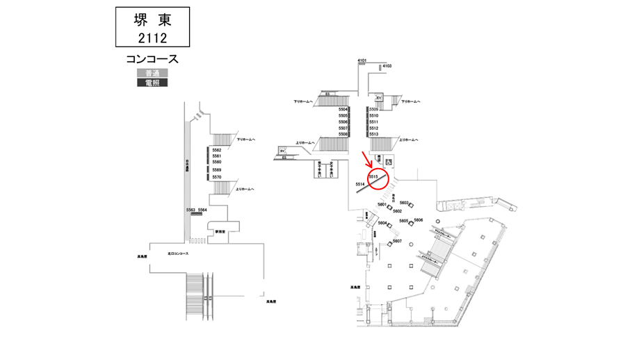 ○№5512 改札内コンコース(ホーム階段付近 西改札側) |