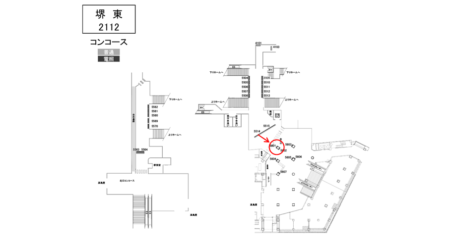 ○№5511 改札内コンコース(ホーム階段付近 西改札側) |